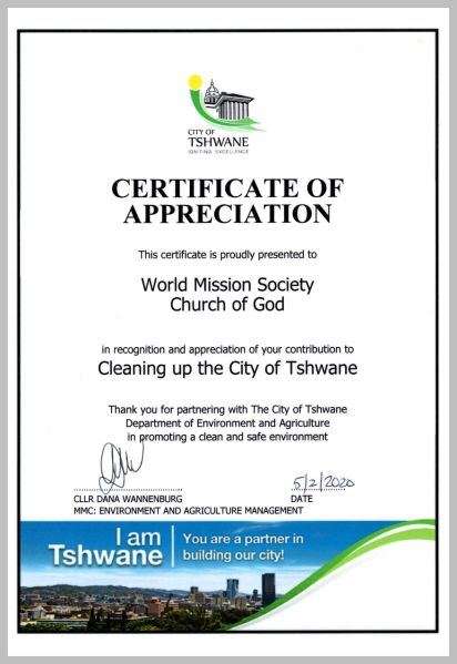 남아프리카공화국-프리토리아-츠와네-시의원-감사장-200205