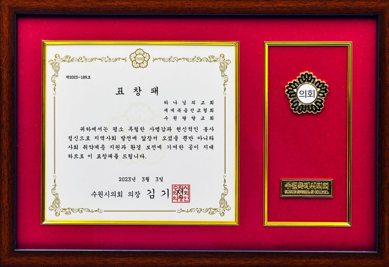 파일:수원시의회의장 표창장-수원팔달교회.jpg